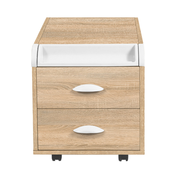 Тумба оснащена удобными пластиковыми ручками и состоит из двух больших ящиков для удобного хранения различных предметов, таких как учебники, тетради, канцелярские принадлежности и другие мелочи.